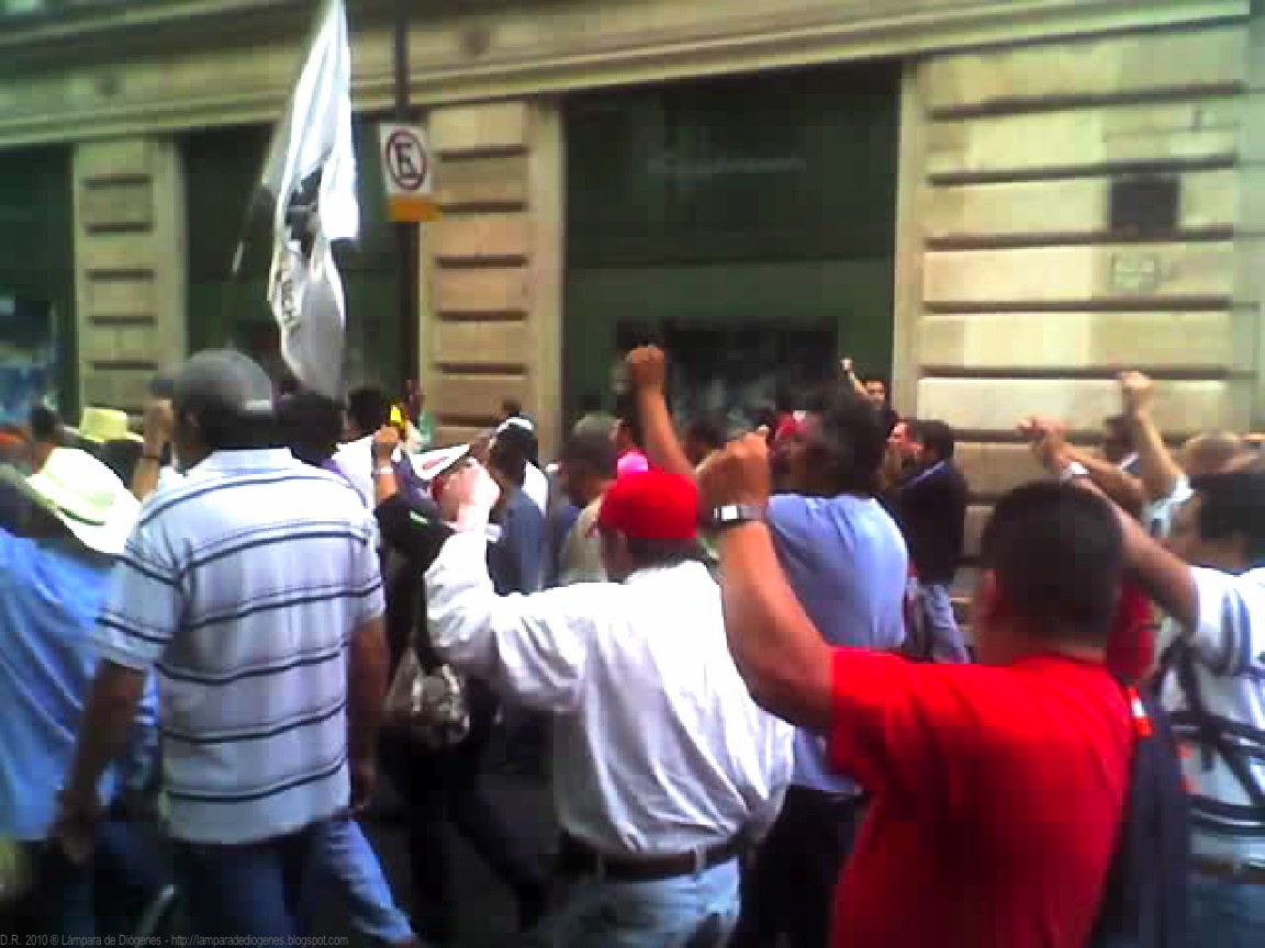 "¡El SME sin comer dispuesto a vencer!" se escuchó gritar con energía mientras se avanzaba por la calle de Circunvalación, al llegar a San Pablo se viró hacia el poniente hasta la Avenida 20 de Noviembre y para regresar al campamento en el Zócalo.